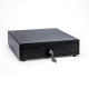 The Oxhoo TR410 is a black steel cash drawer with front opening and 2 locks positions, manual or electric opening. It includes 8 removable coins cups, 4 note holder with metal tongs.