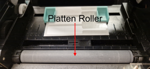 Check that there is no debris on the platen roller. The platen roller is what drives the labels out of the printer. On rare occasions, labels dislodge themselves and can stick onto the platen roller. Remove any debris from the platen roller and attempt to feed labels again.